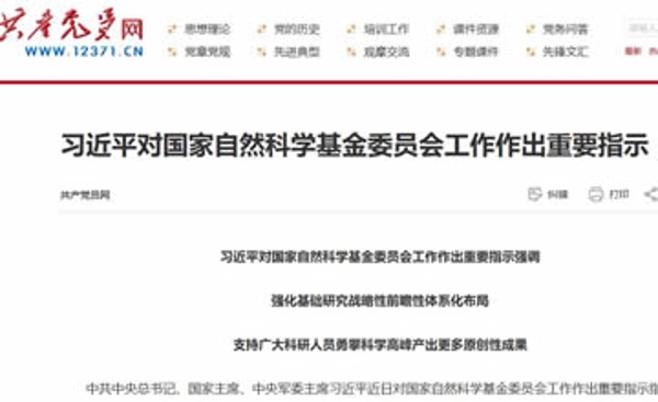 中共中央总书记、国家主席、中央军委主席习近平近日对国家自然科学基金委员会工作作出重要指示指出,国家自...