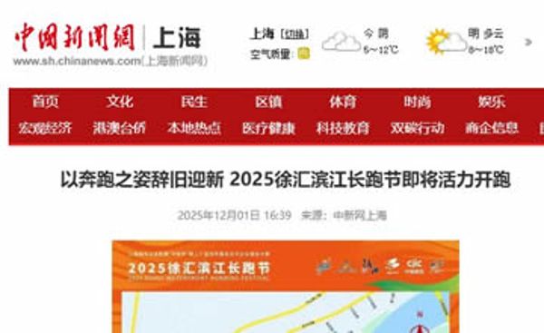 凤凰网:以奔跑之姿辞旧迎新 2025徐汇滨江长跑节即将活力开跑 中外跑者齐聚“最美西岸”迎新赛道