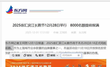东方网:2025徐汇滨江长跑节12月28日举行 8000名额提前报满