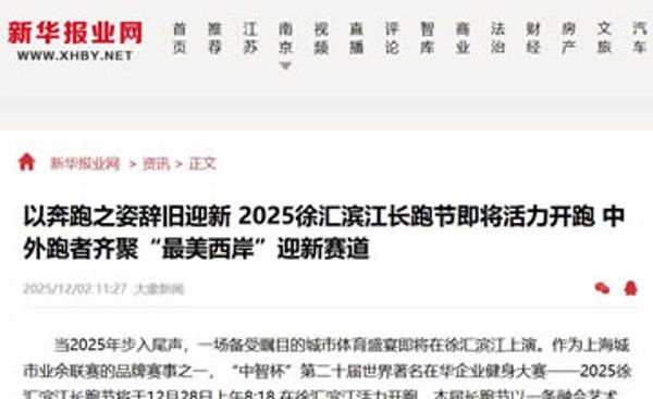 新华报业网:以奔跑之姿辞旧迎新 2029徐汇滨江长跑节即将活力开跑 中外跑者齐聚"最美西岸"迎新赛道